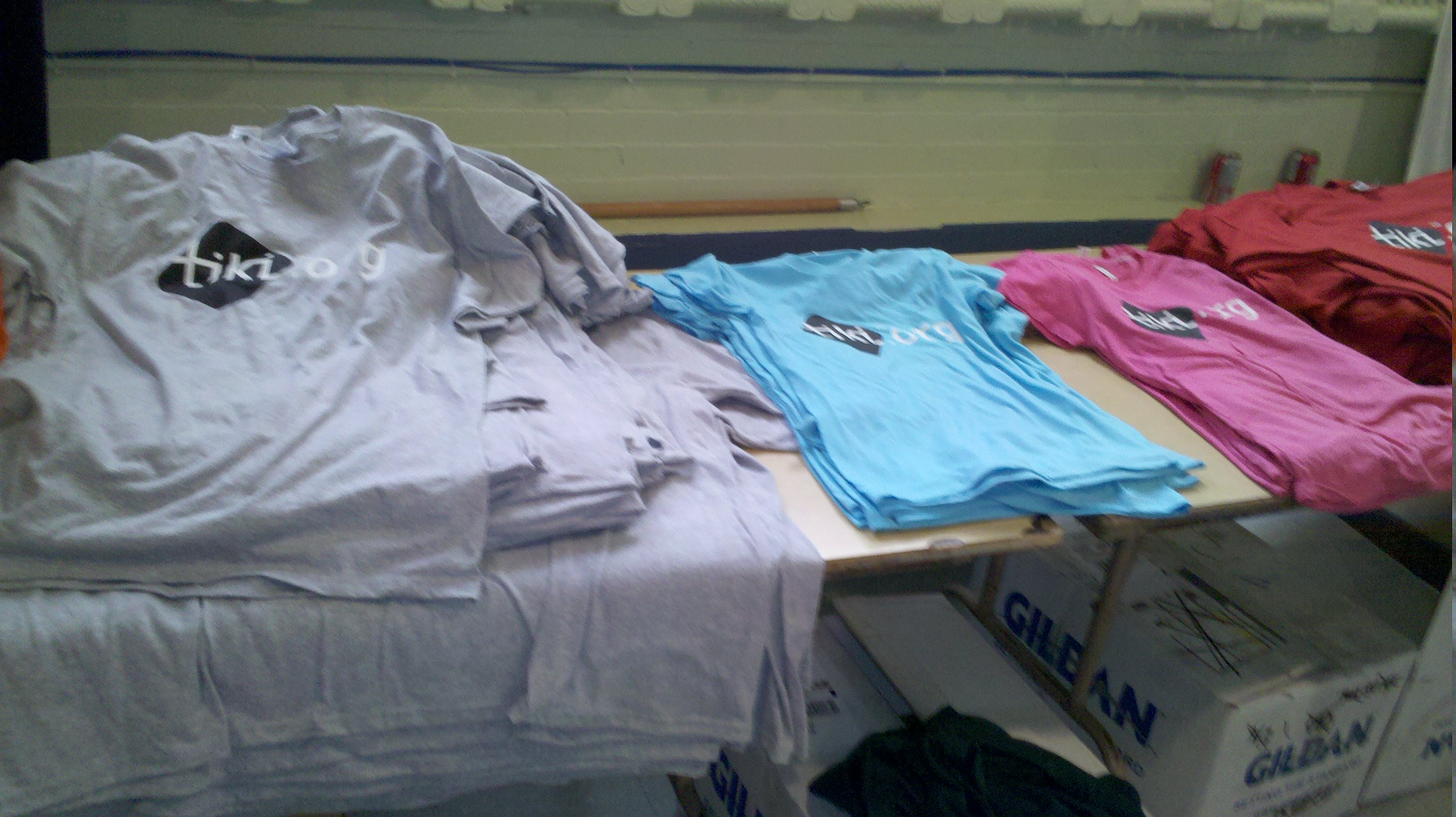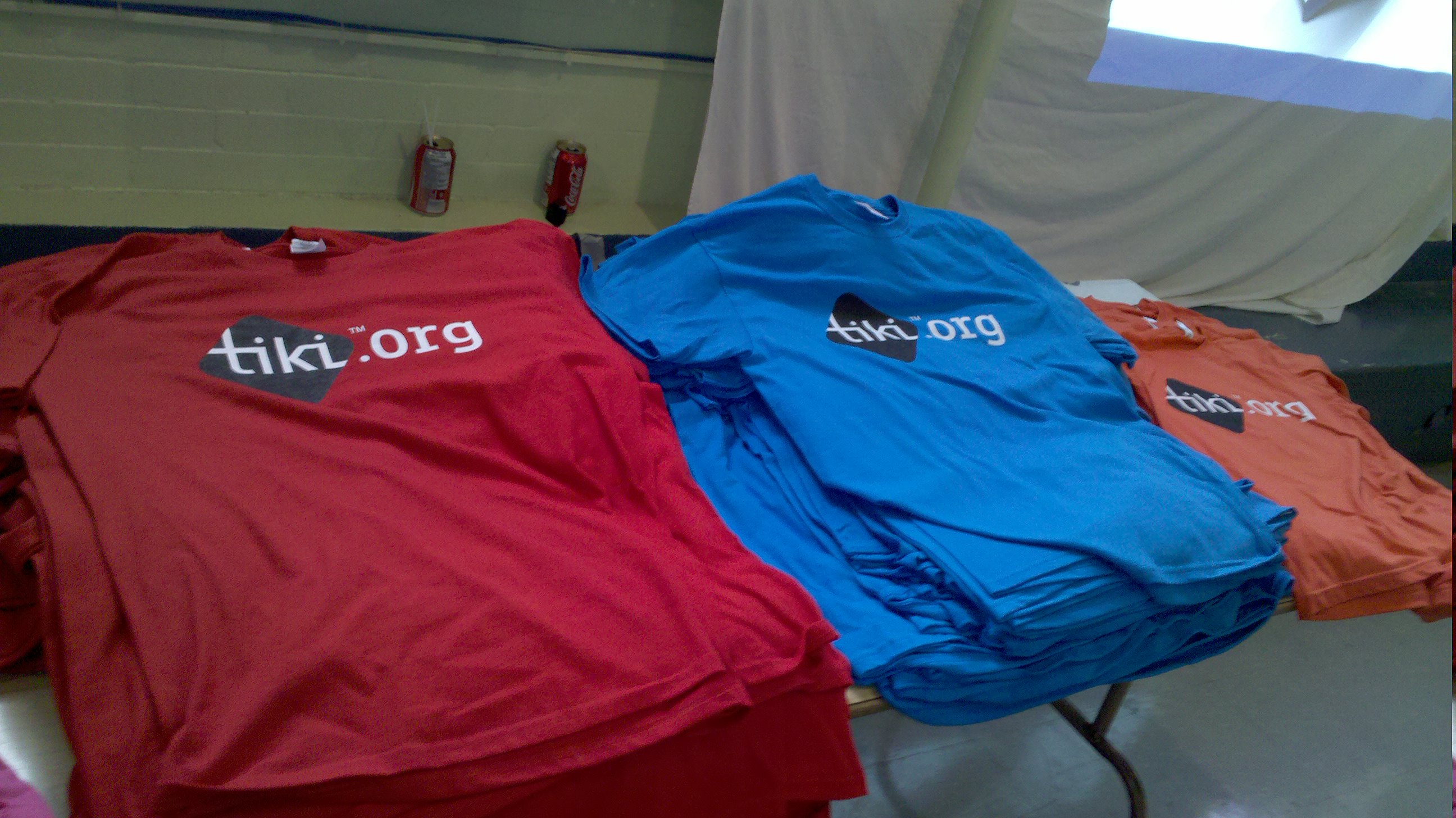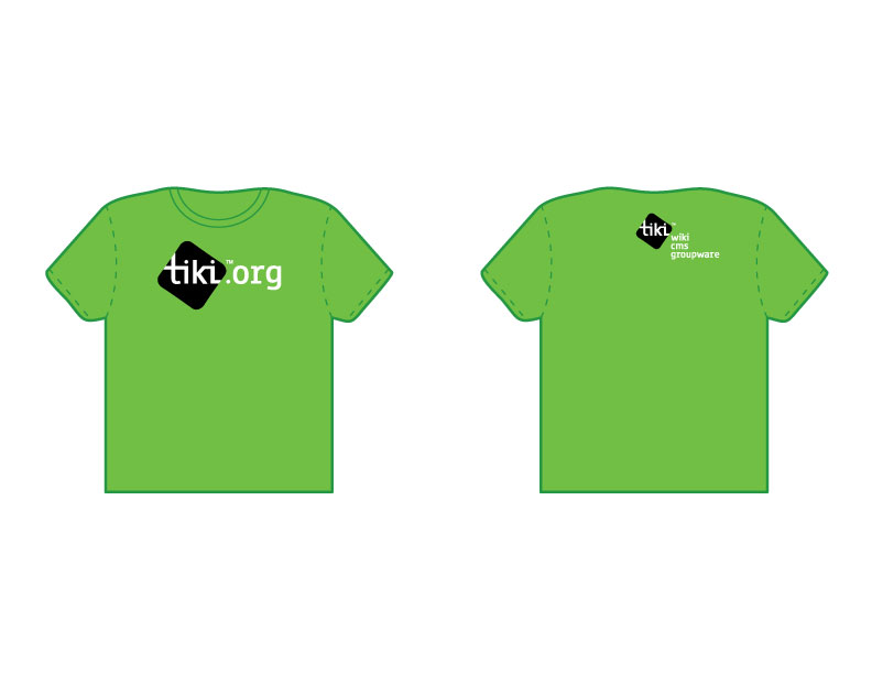 | Color of t-shirt | color of diamond logo | color of text in logo (tiki) | color of text outside the logo (ex.: .org or wiki cms groupware) | example |